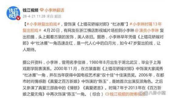 2026年4月20日,浙江横店影视城片场,一位身着古装、气质温婉的女演员正在拍摄新剧《司宫楚》。当镜头拉近,人们惊喜地发现——这正是47岁的小李琳,那个在《上错花轿嫁对郎》中惊艳了无数观众的“杜冰雁”。