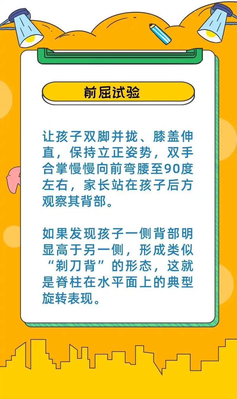 “四横一竖”或前屈试验阳性,均需要引起重视。即使孩子背部只有轻微不对称,家长也应立即带孩子前往正规医院的骨科或脊柱外科做专业检查明确诊断。